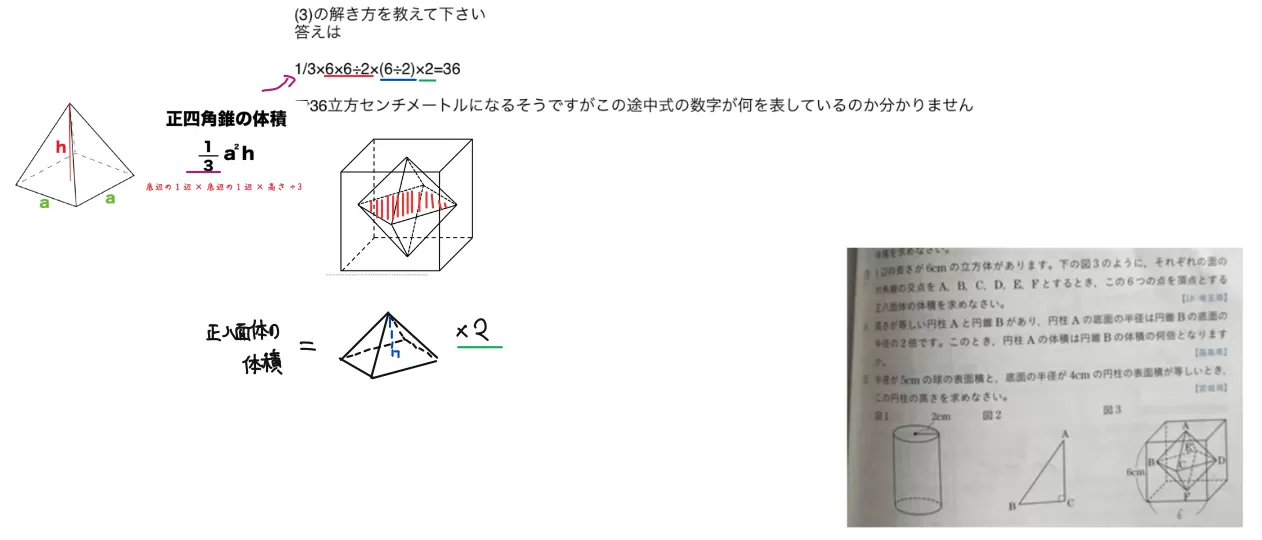 正八面体の体積を求めなさい。