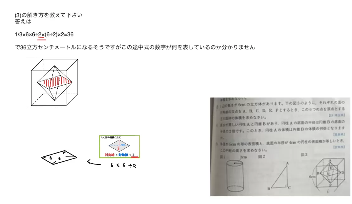 で36立方センチメートルになるそうですがこの途中式の数字が何を表しているのか分かりません